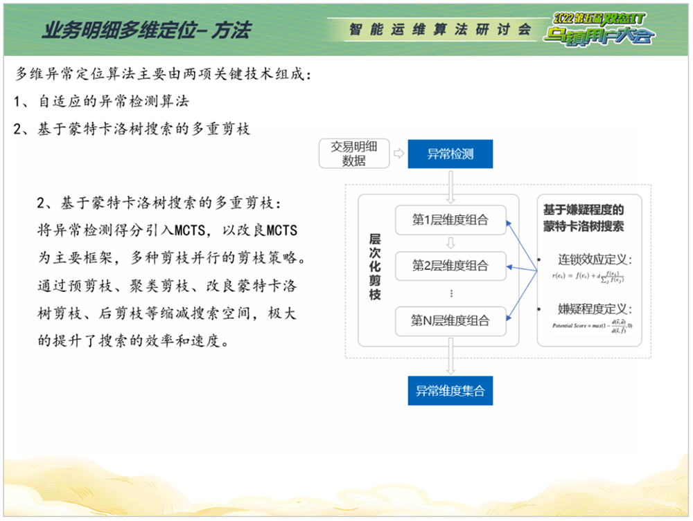 应用系统层。包括功能号级业务指标的异常检测场景,以及运行日志的异常检测场景,检测到指标异常后会自动触发对业务多维指标的分析定位,判断异常原因所在的维度。对于调用关系复杂的多系统场景,调用链根源系统定位能够判断出哪些端口或者服务有异常。