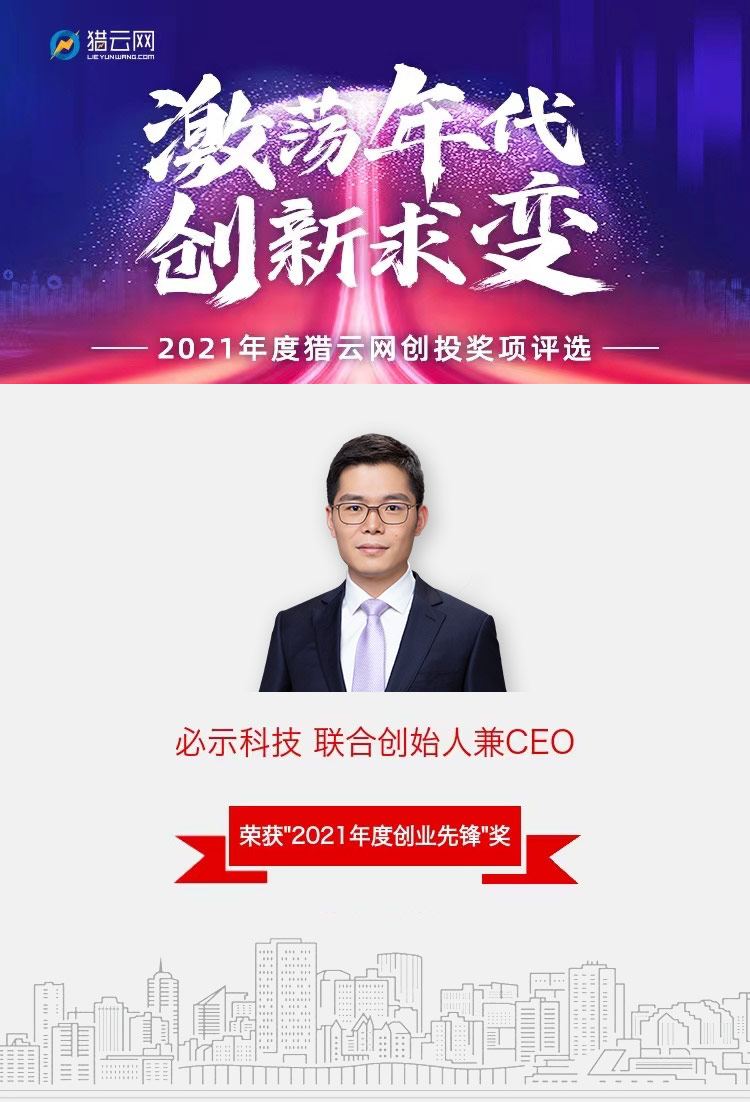 12月8日,以“激荡年代,创新求变”为主题的猎云网2021年度创投奖项评选尘埃落定,数十个奖项见证了各行业创业精英一年来的汗水与智慧。其中,必示科技CEO刘大鹏博士荣获“2021年度创业先锋”大奖。刘大鹏博士表示,非常感谢评委会对自己与必示科技团队所取得成绩的认可与鼓励,接下来将带领必示科技继续砥砺前行,以创新精神探索智能运维产业全新格局。