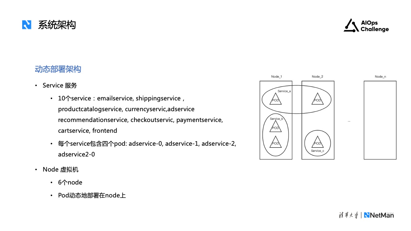 为了贴合实际,本届挑战赛基于微服务系统收集了海量多模态监控数据,包括指标日志和调用链。指标又包括业务指标和性能指标,业务指标共有4种,性能指标有400种左右。每天的数据压缩后大约有800兆,和实际运维场景的数据量接近。在未来发布数据时,我们会配备详细的数据说明文档,方便大家理解这些海量监控数据。
