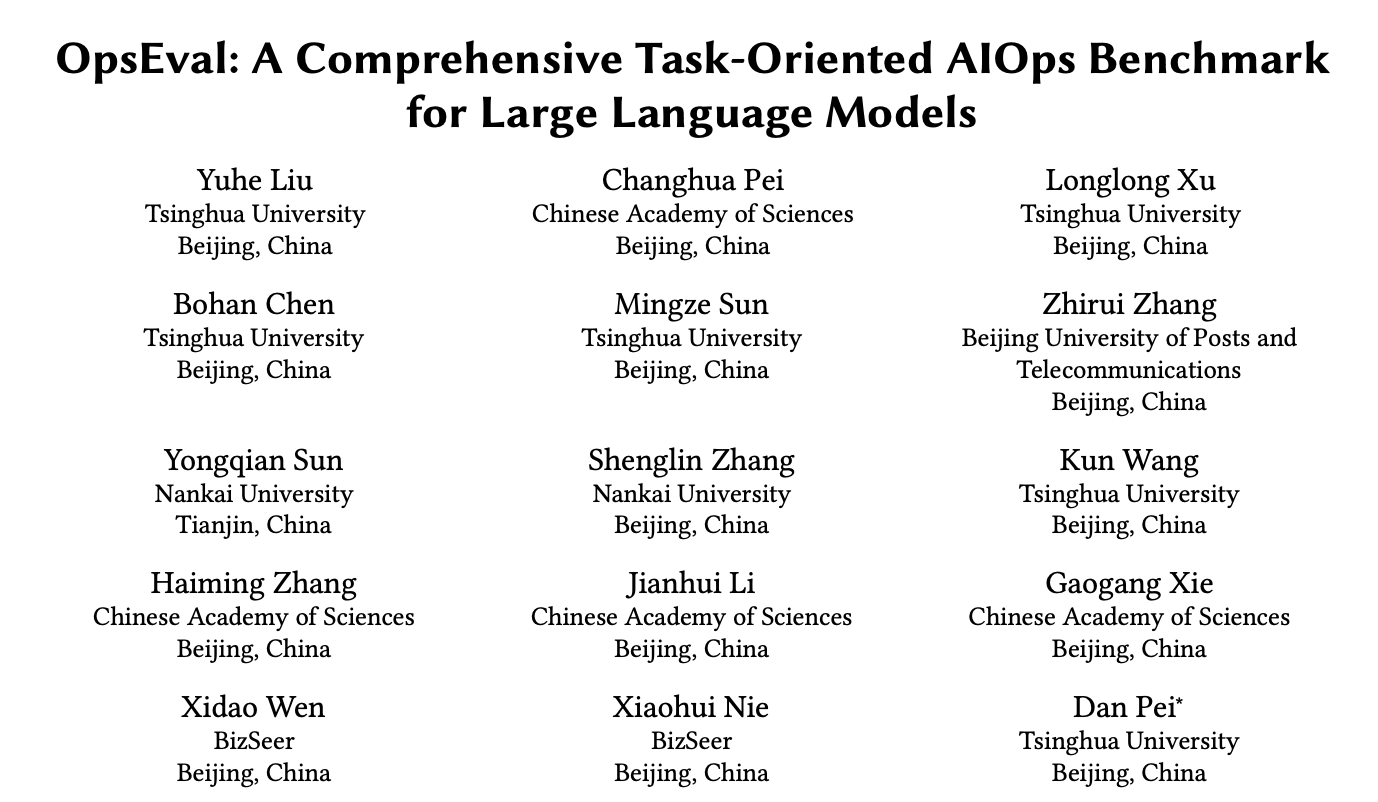 为了解决这些问题,清华大学、中国科学院计算机网络信息中心、南开大学、必示科技、中兴通讯、中亦图灵等多家单位联合发布了OpsEval:面向大规模语言模型的多层次智能运维能力评价基准。此榜单发布于中国科技网(CSTNET)上,中国科技网是中国科学院领导下的学术性、非盈利的科研计算机网络,是中国第一个全功能正式接入国际互联网的网络,主要面向全国科技界、政府和高新技术企业提供网络服务,覆盖30余个省、市、自治区、直辖市,拥有网络用户100余万。中国科技网由中国科学院计算机网络信息中心建设维护。中心成立于1995年3月,是中国互联网诞生地。
