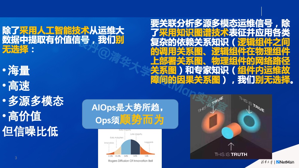 如前所述,AIOps需要分析关联海量多源多模态运维大数据,因此基于强运维领域知识的AI 3.0 技术也是AIOps发展的必然技术路线。
